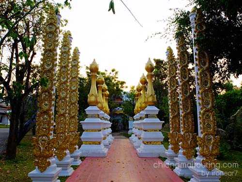 4.ศาลาบาตร รูปแบบล้านนาประยุกต์ ก่อสร้างด้วยอิฐถือปูนปิดทอง ประดับด้วยกระจกสี ภายในประดิษฐานพระพุทธรูปประจำวันเกิดจำนวน 9 องค์ หน้าตักเท่าคนจริง พร้อมซุ้มโขงและแท่นแก้วตกแต่งรูปแบบล้านนา