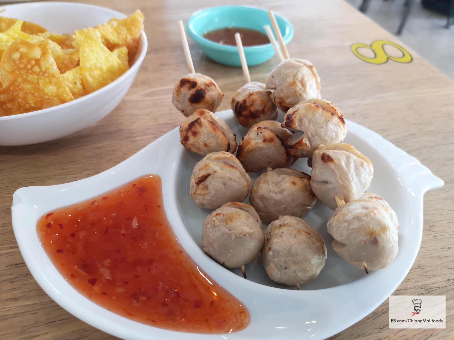ระหว่าง นั่งรอ ก๋วยเตี๋ยวมาเสริฟ จะสั่ง #ลูกชิ้นปิ้ง หรือ #เกี๊ยวทอดกรอบ มาทานเล่นก่อน ก็ อร่อยเพลิน ทีเดียว