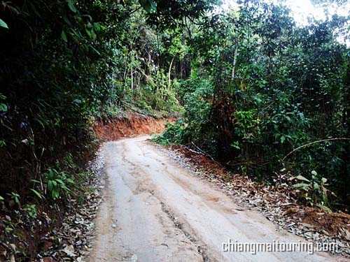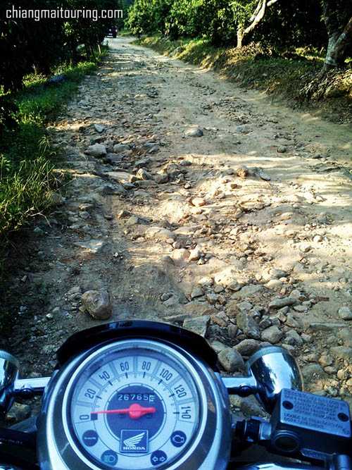 และแล้วก็ได้เวลาแห่งการโบกมือลาขุนช่างเคี่ยน ผมขับรถเข้าสู่เส้นทางแรลลี่ที่จะมายังห้วยตึงเฒ่า สภาพถนนช่วงนี้ ไม่ต่างจากทางไปไร่ไปนาตามชนบทกันเลยครับ สองข้างทางเต็มไปด้วยป่าไม้ที่ไม่หนามาก สลับกับสวนลำไยชาวบ้าน ถนนบางช่วงเป็นทางน้ำไหลของลำธารในช่วงหน้าฝน สังเกตได้จากก้อนหินตามถนนขนาดเท่าหัวลูกหมา
