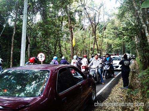 ไอ้คนจะขึ้นไปยังขุนช่างเคี่ยนก็จะไป ไอ้คนจะลงมาก็ลงมา ทั้งมอเตอร์ไซค์รถยนต์ติดกันวุ่นวายพอดู สุดท้ายเลยต้องมีคนมาอาสาเคลียร์ทางจราจรให้ว่าใครควรไปก่อนไปหลังช่วงไหนของถนน