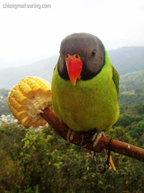 ที่แตกต่างจากที่มาครานั้น เป็นจำนวนคนที่มาชมวิวจุดนี้เยอะขึ้นจนชาวม้งขนเอาอาหารขึ้นมาขายให้แก่นักท่องเที่ยว ช่วงนั้นผมหิวๆ เลยซัดขนมปังปิ้งทาเนยไป 2 แผ่น รสชาติดีกว่าเลียเสาไฟฟ้า ก่อนจะออกเดินทางต่อเลยแวะถ่ายรูปนกแก้วเล่นซักหน่อยเห็นมันน่ารักดี