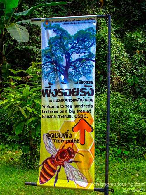 นอกจากความเพลิดเพลินในการเยี่ยมชมสวนกล้วยแล้ว ลึกเข้าไปด้านในยังมีผึ้งร้อยรังให้ได้ชมกัน ซึ่งอยู่บนต้นยางใหญ่ ใครอยากเห็นสิ่งมหัศจรรย์ของธรรมชาติ ก็แว่บเข้าไปดูกันได้ครับ