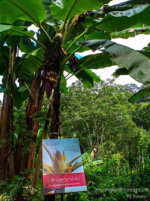 จากนั้น เมื่อเดินทางมาถึงด้านในแปลงรวบรวมพันธุ์กล้วย จะพบกล้วย นานาชนิด ปลูกเป็นกลุ่มๆ กระจายทั่วบริเวณ นอกจากนี้ ภายในบริเวณดังกล่าวมีทางเดินขึ้นบันไดไปยังจุดชมวิวที่อยู่ ด้านบน สามารถมองเห็นวิวทิวทัศน์รอบๆ แปลงกล้วยจากมุม สูงได้เกือบทั่วบริเวณ มีม้านั่งให้พักเหนื่อยจากการเดินชมพันธุ์กล้วย เพื่อที่จะชื่นชมพันธุ์กล้วยโดยรอบ ภายใต้ร่มเงาใบกล้วย ทําให้เกิดความเพลิดเพลินและผ่อนคลาย