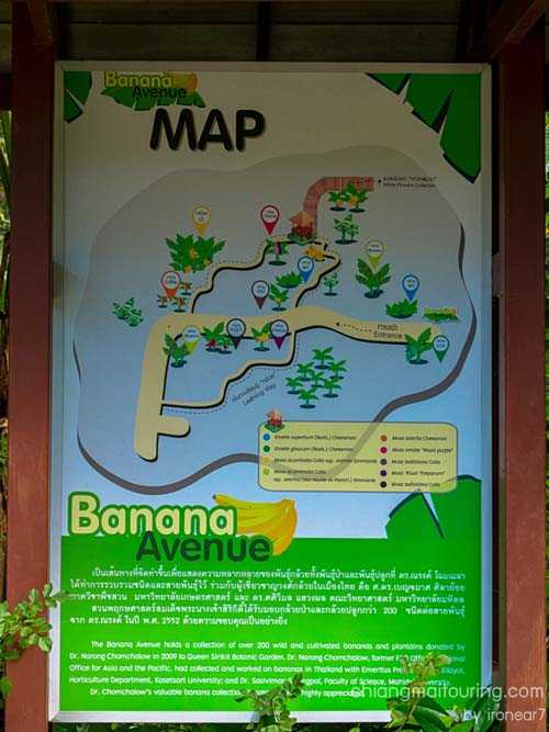 สำหรับส่วนแรกที่จะพามาทำความรู้จักนั้น คือ “Banana Avenue” แปลงรวบรวมพันธุ์กล้วย อันเป็นสถานที่ให้ความรู้เกี่ยวกับกล้วยป่าแลกล้วยปลุกในเมืองไทย โดยรวบรวมพันธุ์กล้วยไว้มากกว่า 200 ชนิด ซึ่งส่วนใหญ่มีแหล่งกระจายพันธุ์ในภูมิภาคเอเชียตะวันออกเฉียงใต้