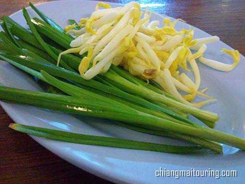 จานนี้เป็นผัดไทยธรรมดาไม่ใส่กุ้ง ปริมาณให้มาถือว่าเยอะพอควรครับในจานใบใหญ่ ก่อนปรุงผมแอบตักชิมก่อน รสชาติต้องบอกว่าเฉยๆ ฮะ งานนี้ต้องปรุงกันสถานเดียว (ตรรกะผมผัดไทยที่รสเยี่ยม แทบไม่ต้องปรุง หรือถึงปรุงก็ปรุงแต่เพียงน้อย) มะนาวให้มาซีกเดียวไม่พอ น้ำน้อยอีก งานนี้ต้องอาศัยน้ำส้มสายชูเหยาะลงไปซัก 3 ที ที่เหลือก็เติมไปตามใจคุณนั่นแหละ ทั้งน้ำตาล น้ำปลา พริกป่น ถั่วลิสงบด และๆ อย่าลืมใบกุยช่าย อันนี้ต้องกินแกล้มเป็นเครื่องเคียงครับ ช่วยให้รสชาติสะเด่ายิ่งขึ้น เสียดายไปหน่อย ร้านไม่มีปลีกล้วยให้ด้วย ไม่งั้นคงแซบกันกว่านี้