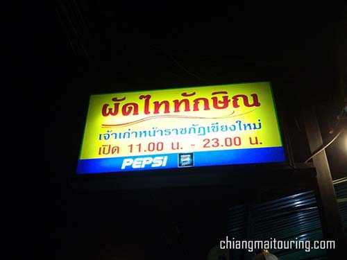 กลับมายังเรื่องผัดไทยก่อนปากจะพาไปหาคุก ผัดไทยยิ่งลักษณ์ เอ้ย “ผัดไทยทักษิณ” จะอยู่แถวๆ หน้ามหาวิทยาลัยราชภัฎเชียงใหม่ คือถ้าขับรถผ่านกาดธานินทร์ ผ่านสะพานลอยหน้ามหาวิทยาลัย มาทางสี่แยกข่วงสิงห์ สังเกตซ้ายมือเลยจะเจอป้ายไฟโผล่ออกมาทักทาย เวลาเปิด – ปิด มีด้วยกันสองช่วง คือ 11.00 -14.00 น. และ 17.00 – 23.00 น.