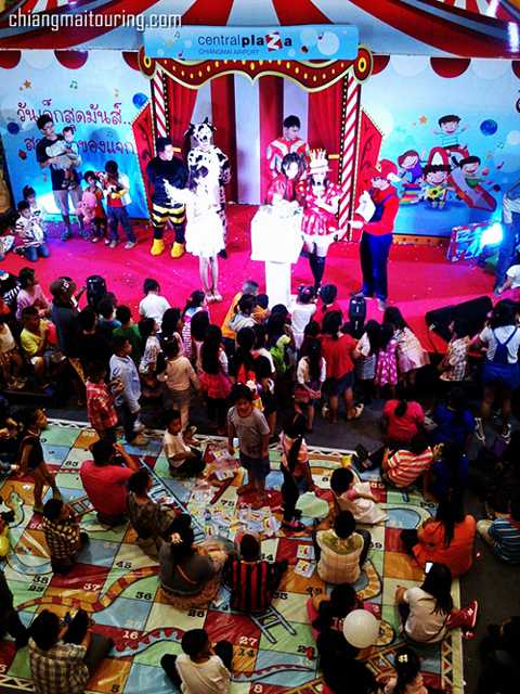 ผมแอบไปเก็บบรรยากาศหน่อยๆ ที่เซ็นทรัล แอร์พอร์ต ตรงนี้เขาใช้ชื่องานว่า “วันเด็กสุดมันส์…สารพันของแจก” กับกิจกรรมมากมายที่มีให้เด็กได้ร่วมสนุกอย่าง เครื่องเล่นแอดเวนเจอร์ ณ ลานน้ำพุชมดอย, ผจญภัย และขุดค้นหาซากไดโนเสาร์ดึกดำบรรพ์, การแสดงโชว์พิเศษ จากสถาบันการศึกษาชั้นนำในจังหวัดเชียงใหม่, กิจกรรม AIS ยิ้มหวานรับวันเด็ก’57 ณ โซนอควาเรี่ยม, การเปิดตัวคิดส์คลับ “สโมสรสนุกคิดสนุกคิดส์” และอื่นๆ อีกมากมาย เรียกได้ว่าวันนั้นทั้งวัน เด็กๆ เพียบครับ